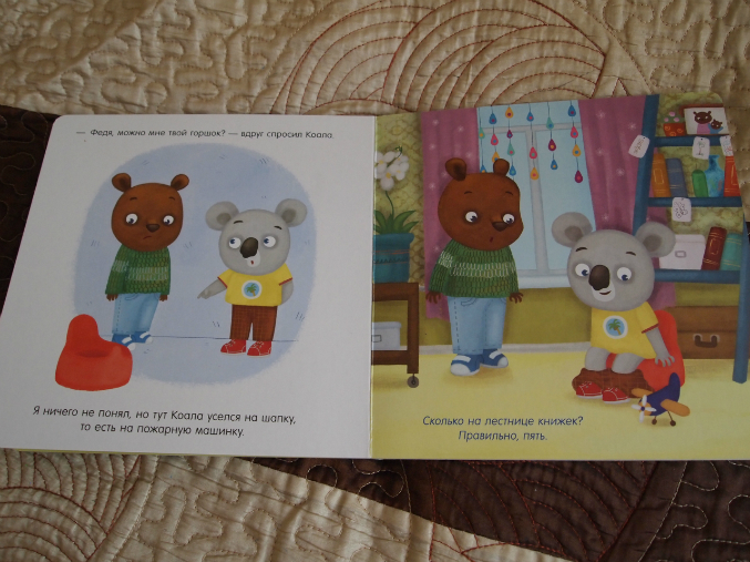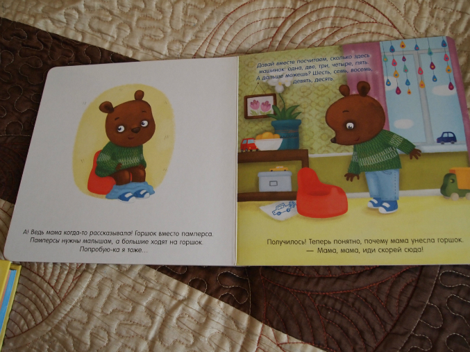 Незаменимая книга для обучения ребенка "ходить на горшок". Маленький герой книги медвежонок Федя разбирается с помощью своего игрушечного поросенка Хрюши и друга Коалы для чего же предназначен этот странный красный предмет. В игровой форме ребенок учиться понимать порядок взаимодействия с горшком и его непростые задачи. Книга добрая и обучающая одноврменно, на страницах можно искать различные предметы, учиться считать и радоваться за героев, которые так отлично проводят время вместе.