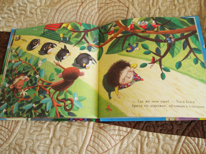 В этой книге маленькая девочка Тося Бося ведет себя ну просто очень плохо, не слушает маму, папу, бабушку. Раз девочка не слушается, то наверное у нее болят уши или они ей просто не очень нужны. В один не очень прекрасный момент уши от Тоси Боси сбежали. Вам это ничего не напоминает??? Героиня отправляется в путешествие, чтобы найти свои уши и заодно понять как важно слушаться родителей.