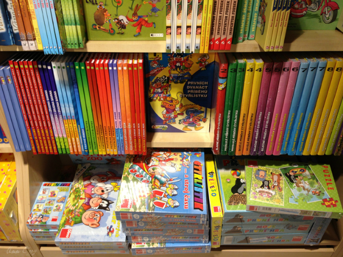 Оказавшись в самом обычном двухэтажном книжном в Праге, что расположен в здании главного вокзала, я конечно же стала сразу искать детский отдел. Целью были книжки о Кротике, но пересмотрев все, пришла к выводу, что все уже издано у нас, покупать не стала. А стала фотографировать)