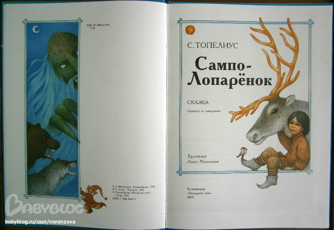 У меня теперь в планах - перечитать и другие сказки этого же автора. Я думаю многие купили/читали "Зимнюю сказку" Топелиуса, ее буду читать следующей (там есть сказка про Сампо-Лопарёнка, но с другой концовкой).