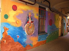 Маленький принц с лисом прятались в одной из подворотен двора дома 119 по Невскому проспекту. Но уже в 2011 году всё закрасили(((