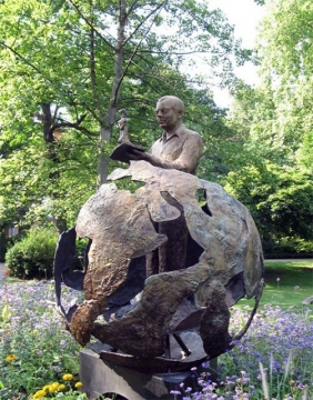 А вот такой Маленький принц был установлен в 2010 году на Пейзажной аллее в Киеве, скульптура подарена французскими мастерами.
