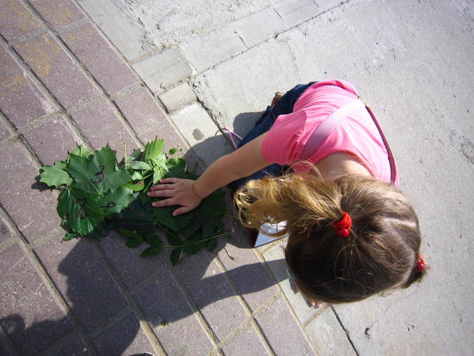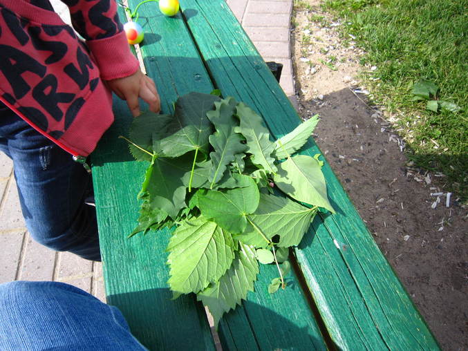 "Мы в лесу гуляли, листья собирали..." (детская песенка).
