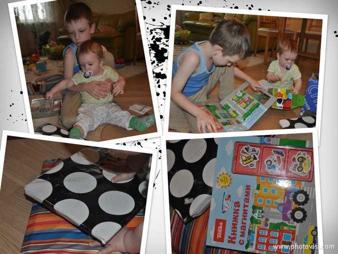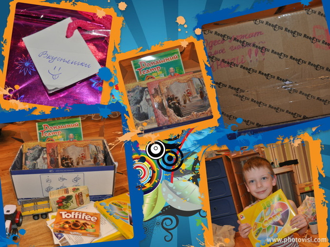 Стефания, благодарим тебя за сбывшуюся мечту в виде книг с иллюстрациями Рейпольского, а также за пакетик под кодовым названием "Вкусняшки" и чудо-тракторок, который кочует по всей квартире вслед за сыном:) "Младшего" одолел сон, поэтому в фотообзоре только "Старшенький". Наверное, Наташа, ты поняла по фото, что Стёпина радость от обладания машиной приравнивается к моей по части книг:))) Так позирует при своей нелюбви к фотосъемке! Вкусняшки съедены, домашний театр еще не организовывали, а вот в игру "Звук.Свет.Вода" играем. Открытка чудесная, - в твоем духе, что тут сказать!.. Бережно храню... А ведь в ночи не сразу ее разглядела на дне коробки и чуть не лишилась такой красоты!