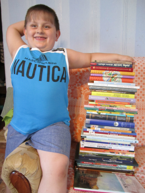 ух, какая стопочка! под стать твоему богатырю!) какое счастье видеть радость детей от башни книг)