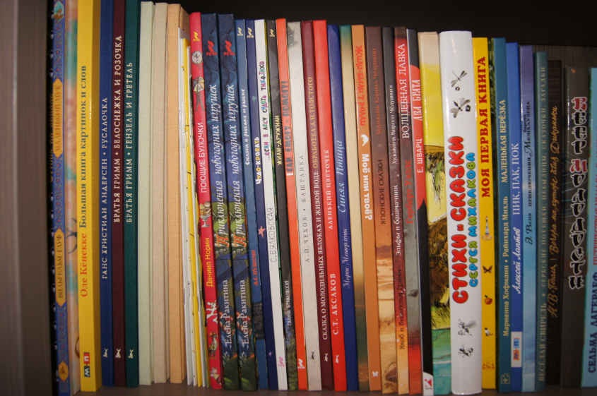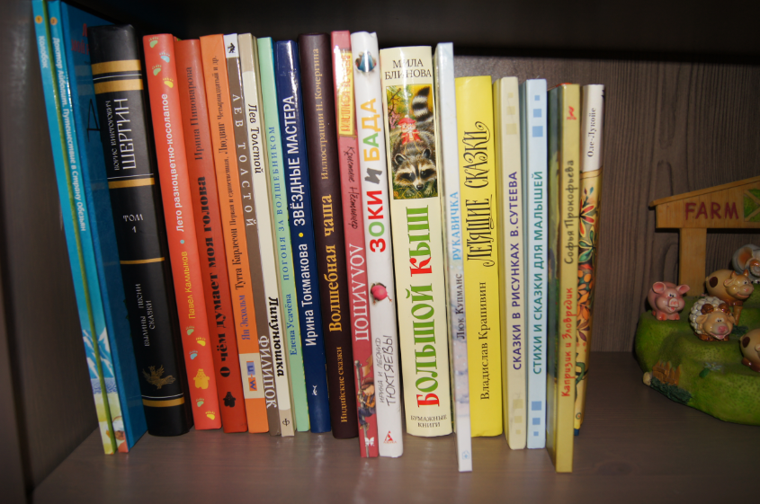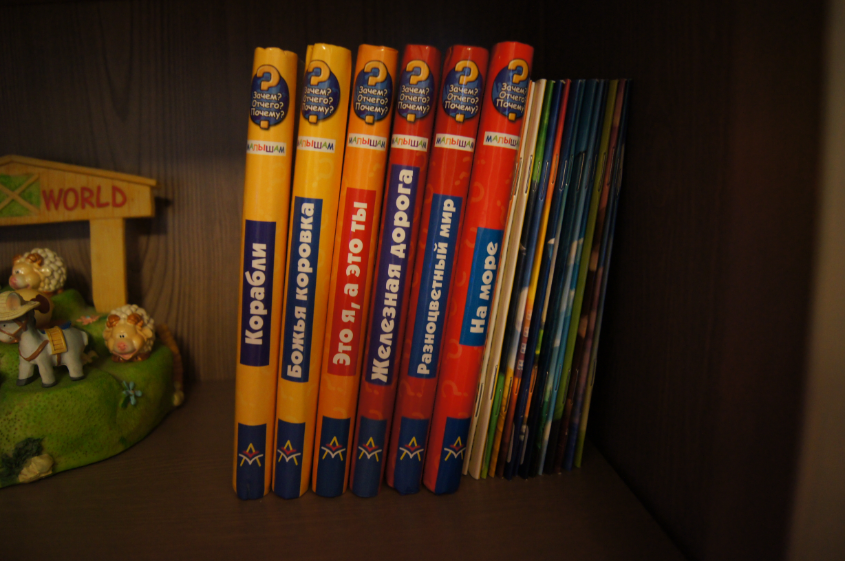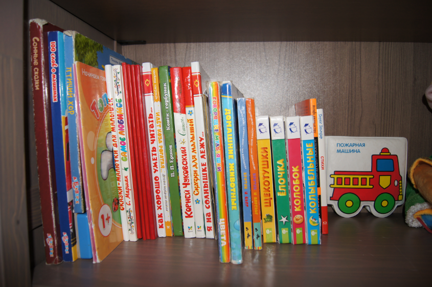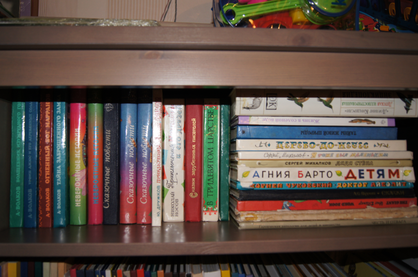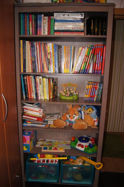 Часть книг позже (после покупки шкафа нам) переедет во взрослую часть библиотеки, а следовательно свободного места на полочках станет больше, но теми темпами пополнения что есть, это тоже боюсь ненадолго.