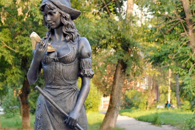 А эта очаровашка была установлена в Долгопрудном меньше года назад, в конце июля 2012 года, к 55-летию города. Стоит эта Золушка у отдела ЗАГС. Но, к сожалению, уже через неделю туфельку у неё украли