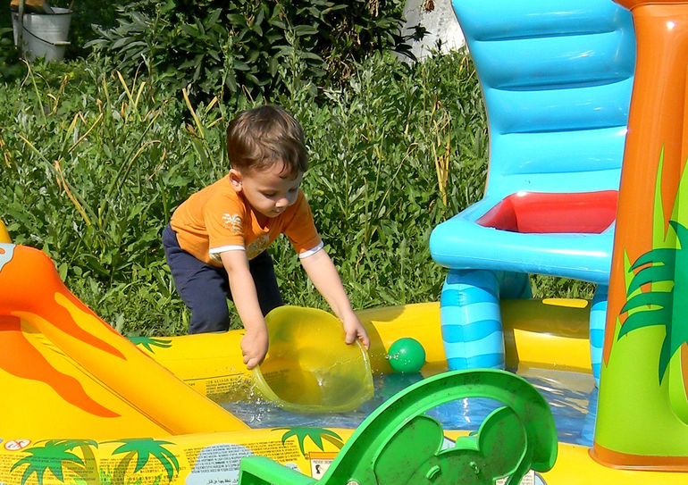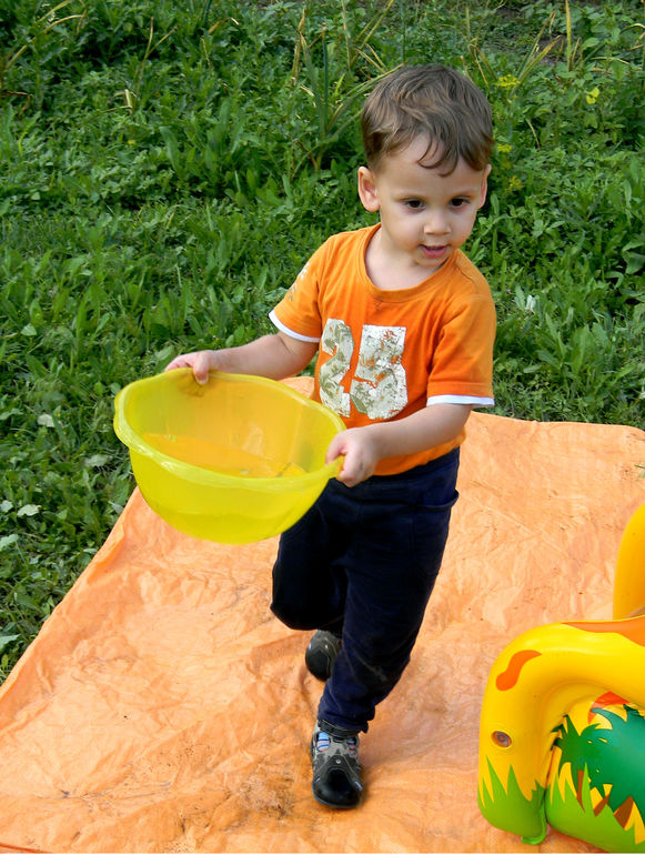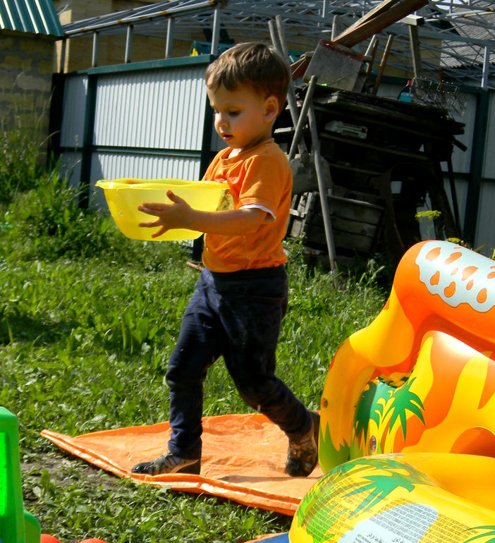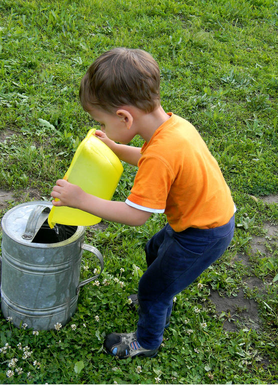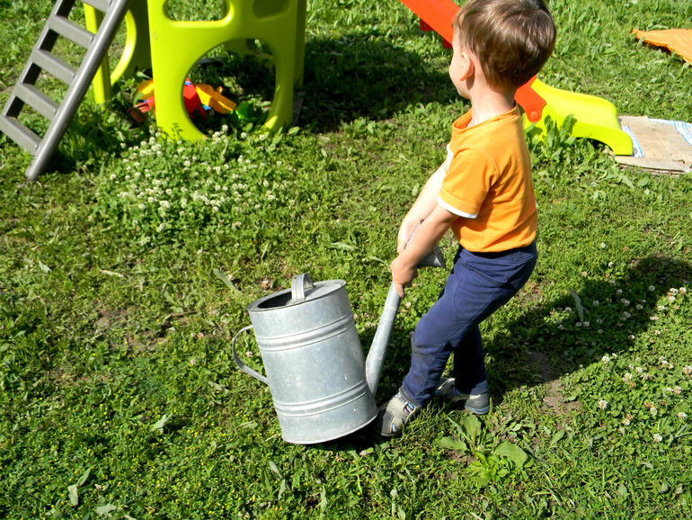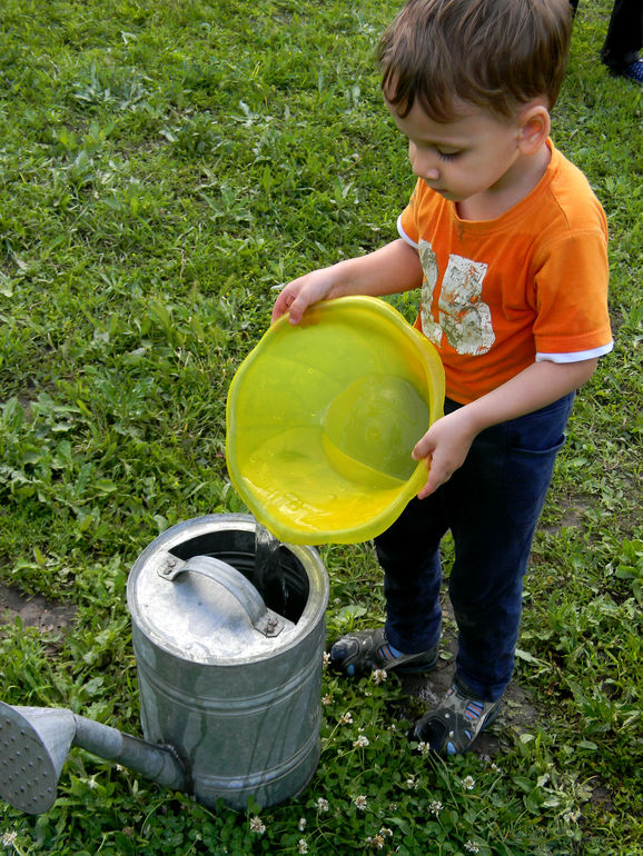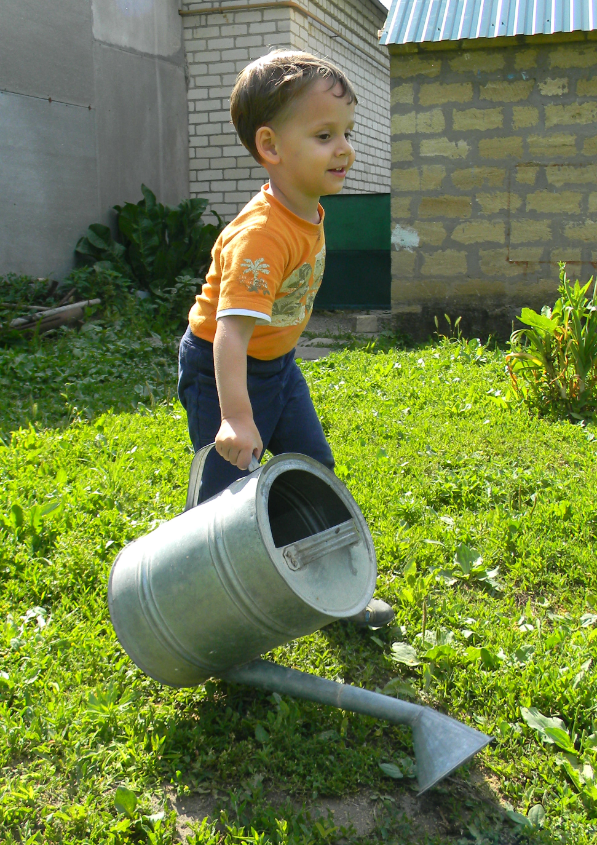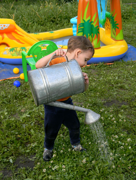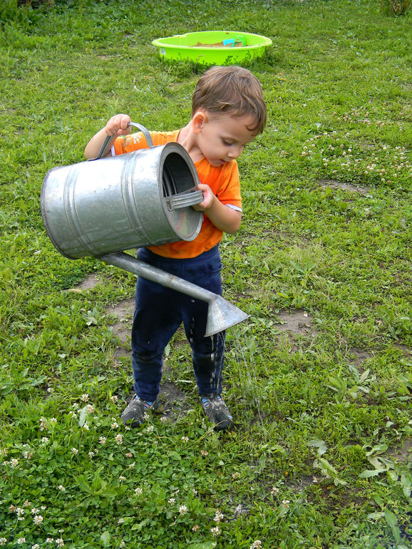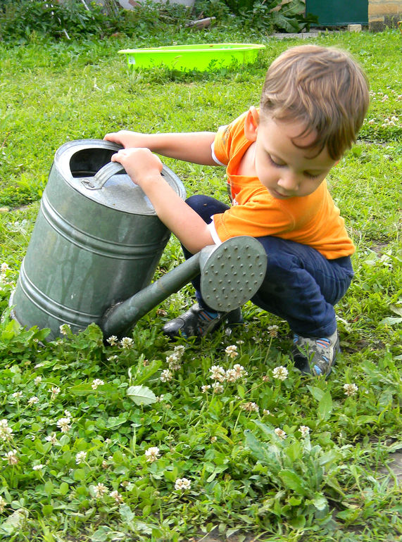 Далее было вот что, Саша взял самую большую лейку (честное слово сам, я не предлагала даже) и отправился поливать цветы клевера))