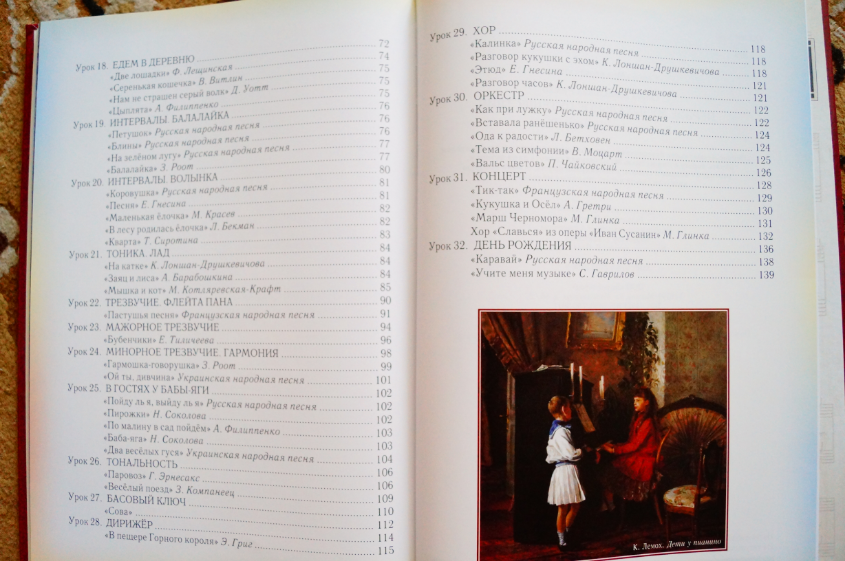 книгу я покупала для сына, но сама с удовольствием изучаю и познаю музыкальные азы)) качество печати превосходное!! практически на каждой страничке имеются прекрасные репродукции картин великих художников на музыкальные темы, что тоже не может не понравиться.