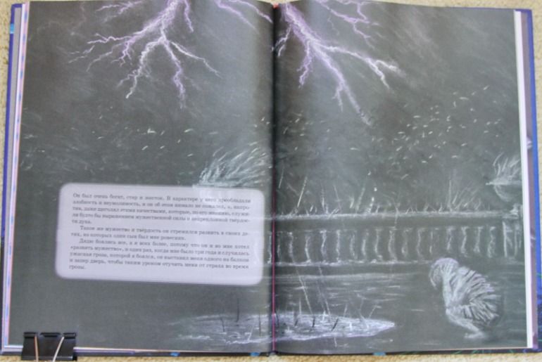 Первая история покороче (до 24 страницы) и только 2 разворота совсем без иллюстраций. Вторая история подлиннее (до 60 страницы) и получается почти точное чередование - разворот без иллюстрации, разворот с иллюстрацией.