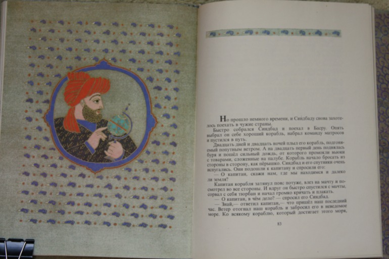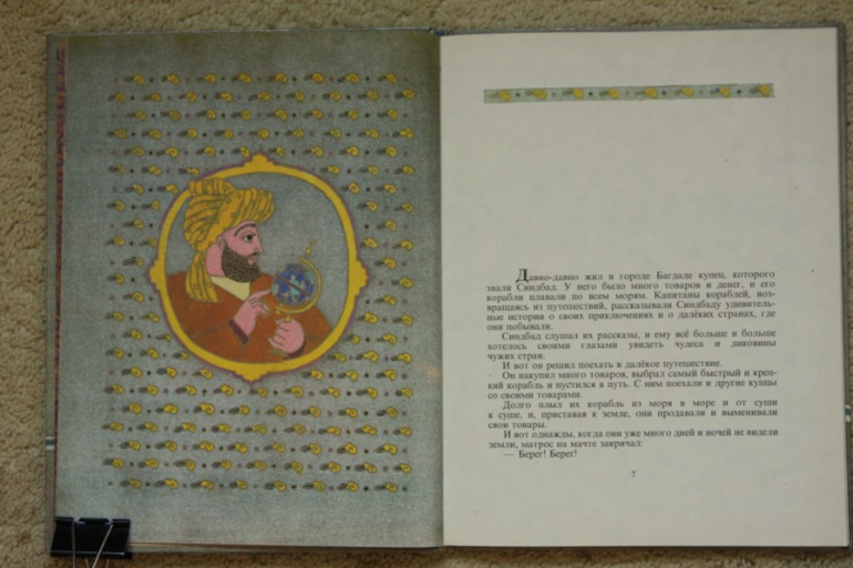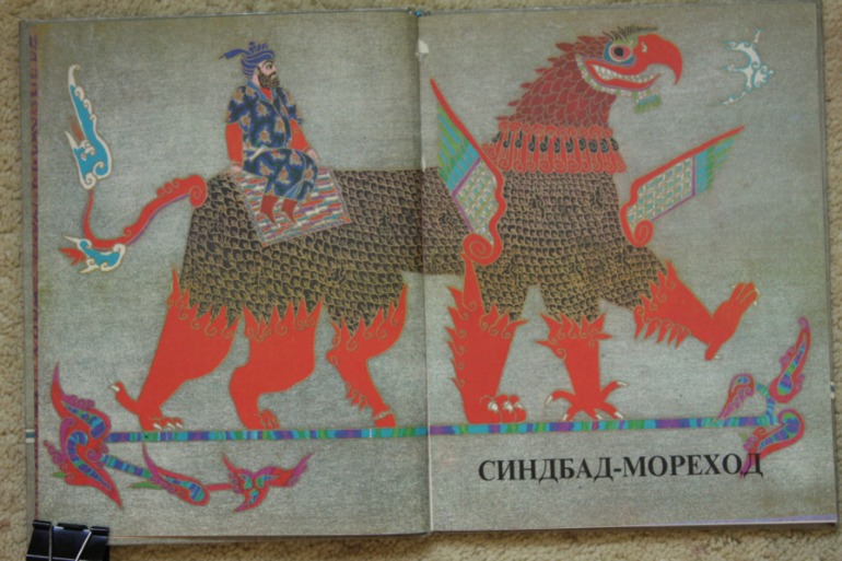 Итак, где же я купила этого чудо Синдбада - ответ в ОЗОНЕ ! Тираж 150 000 экз (!), издано в 1991 году. Состояние - отличное - мне иногда из Лаба и Озона новые книги с обитыми уголками приходят, а этой красотке 20 с хвостиком лет. Все хорошо - только бумага - не пойму -сразу была тонированная или потемнела... и не изменили ли свой цвет иллюстрации из-за этого.