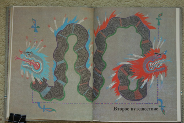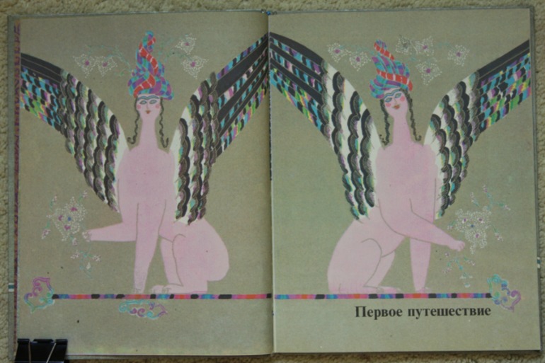 Перед каждой главой идет иллюстрация на весь разворот с номером путешествия