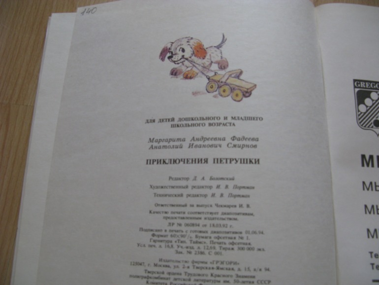отзывыЕсть у нас в городе маленький книжный, где бывают интересные и дешевые книжечки. Так вот нашла там "Приключения Петрушки", 1992 года издания, 160 страниц. Иллюстрации просто потрясающие!!! Себе одну купила, но там есть еще одна, кому надо могу купить, цена 140 руб.