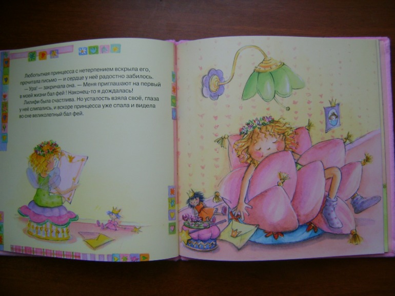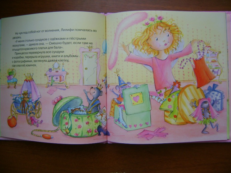 Еще одна милая книжечка о принцессе Лилифи,которая мечтала попасть на свой первый бал фей,весь день Лилифи ухаживала и помогала зверюшкам в своем саду, и так устала,что совсем забыла про бал и бальное платье.И вот ее друзья-звери решили помочь Лилифи и пошили для нее платье необычной красоты