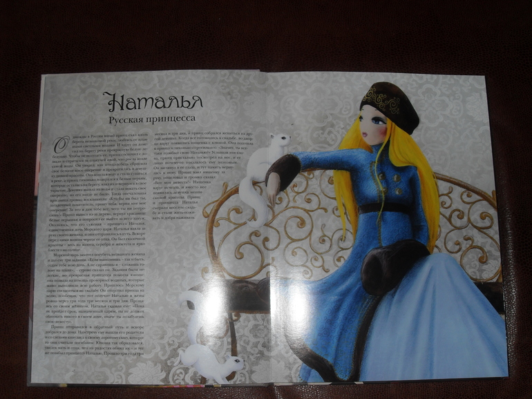Иллюстрации современной французской художницы, прославившейся под псевдонимом Мистигри, нарисованные ею принцессы с гибкими телами и огромными лучезарными глазами, но без носов. Затейливо выполненный альбом (чтобы полюбоваться итальянской принцессой Соренцей, нужно отогнуть часть разворота с изображением носа венецианской гондолы, японка Айко скрывается за сёдзи, а Шехерезада укрыта тяжёлыми занавесями.) На мой взгляд, особой литературной ценности эта книга не представляет, т.к. в ней пересказы разных сказок, легенд, но это мой взрослый взгляд, дочке нравится, книга очень красивая...!