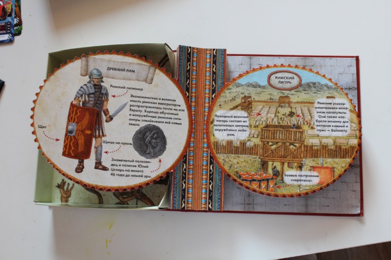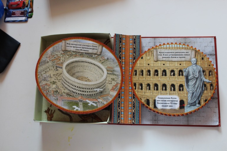 Про содержание- это мини энциклопедии для первого знакомства с историей. Информации ровно столько и в такой доступной форме, чтобы не перегрузить и не оттолкнуть ребёнка, а вызвать интерес и желание всё рассмотреть, прочитать и запомнить, а необычная форма исполнения ещё даёт и визуальное представление о пирамидах и Колизее. Тема древних цивилизаций Майя, Атцеков и Инков вообще редко встречается в детской литературе. Одним словом, книги безусловно полезные и интересные.
