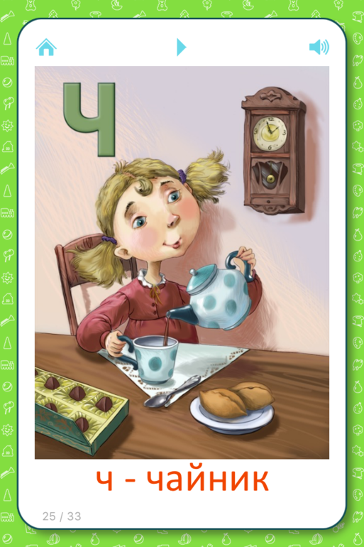 Дополнительно идет проверочная игра и алфавит со звуками, а не названиями букв.