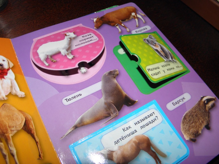 на каждом развороте по 3 окошка с вопросом или ответом!