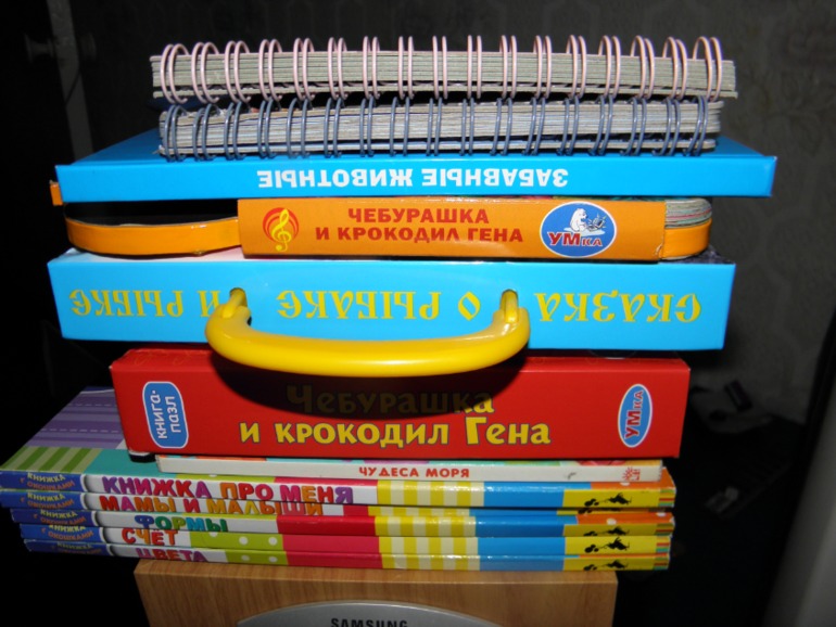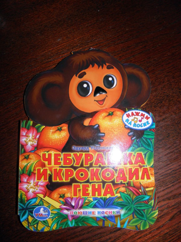 Музыкальная книжка "Умка" нажимаешь на носик и чебурашка поет свою песенку! в книге небольшая история!