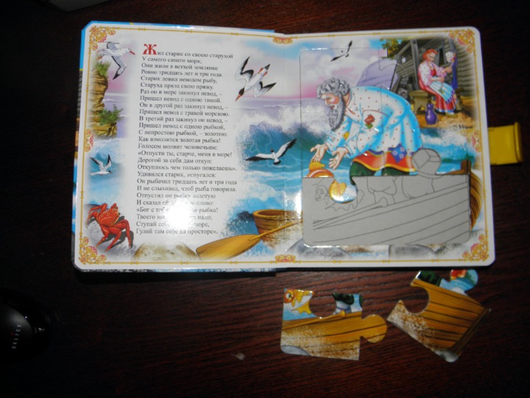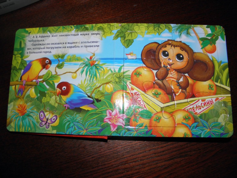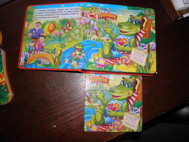 Эта книга -пазл издательства РОССА Книгу нам подарили. Мне она не очень нравится в ней хоть и крупные пазлы на 6 частей но они плохо очень достаются и если их убрать остается чб картинка причем не соответствующая пазлу либо приближена либо приближен фрагмент картинка!