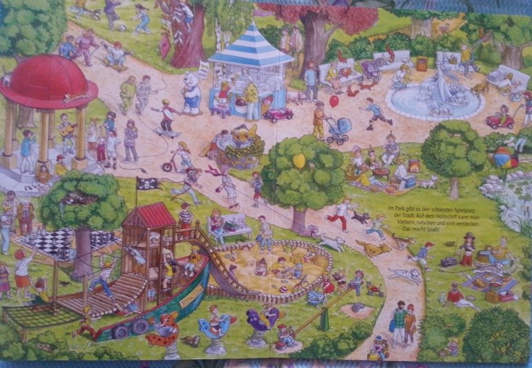 4. Последняя книга. Про город.Наша любимая, особенно дочке нравятся развороты про парк и зоопарк.