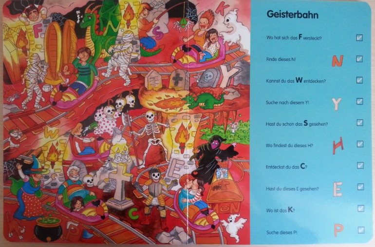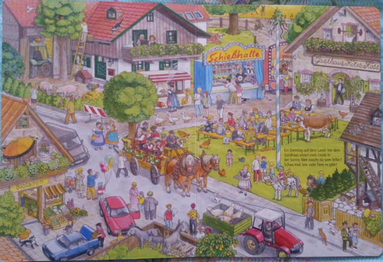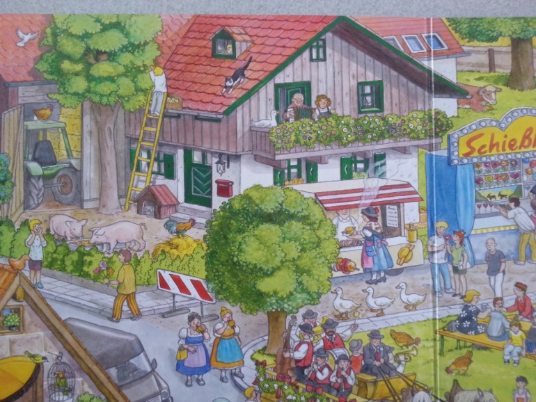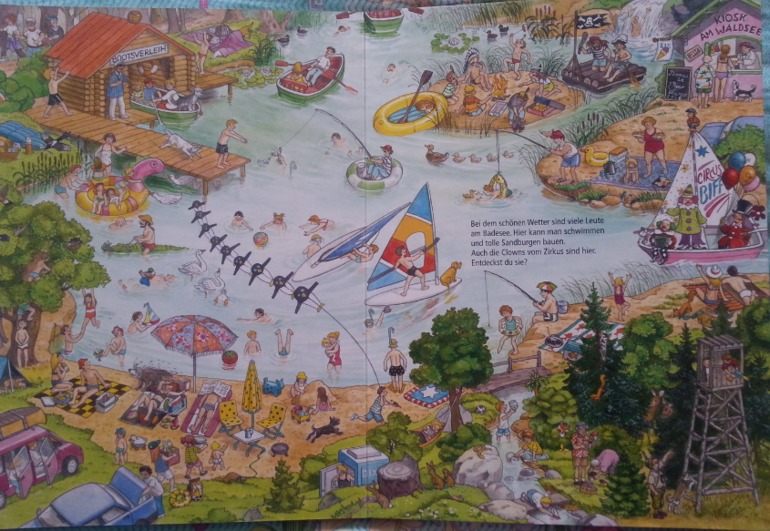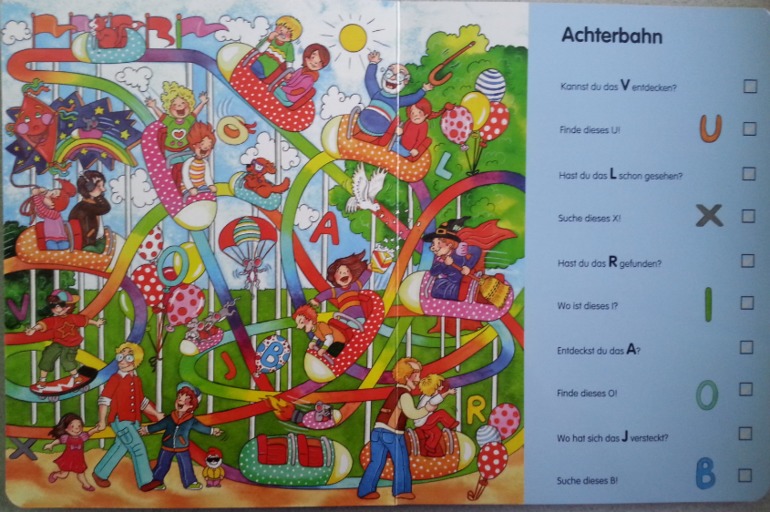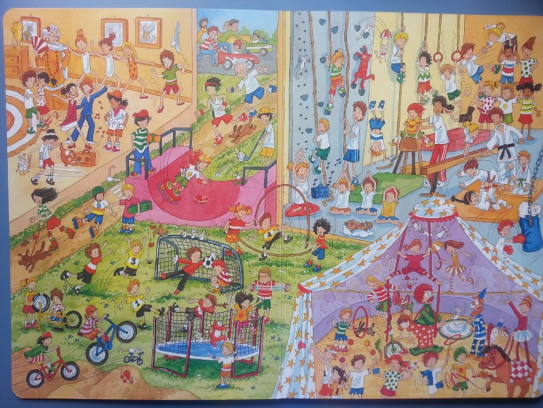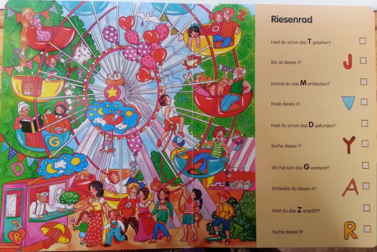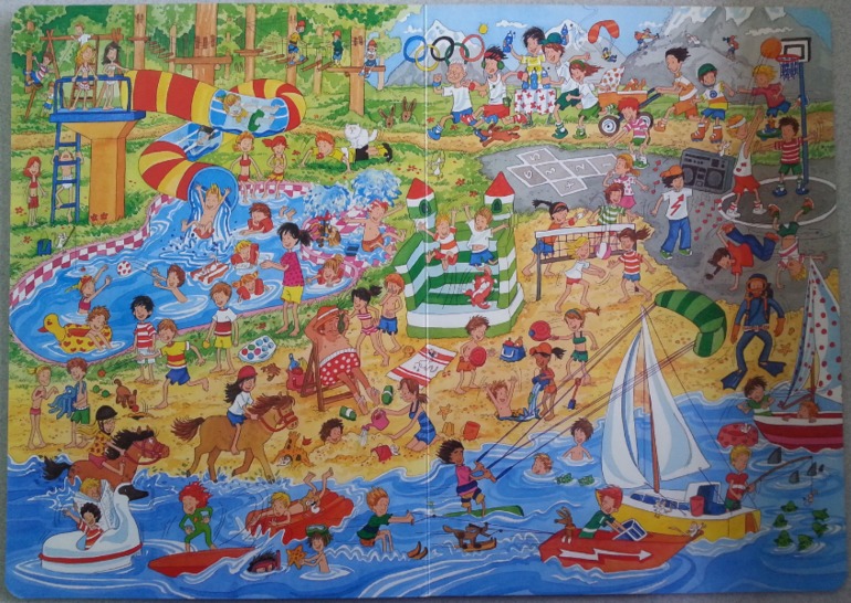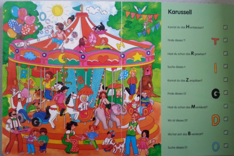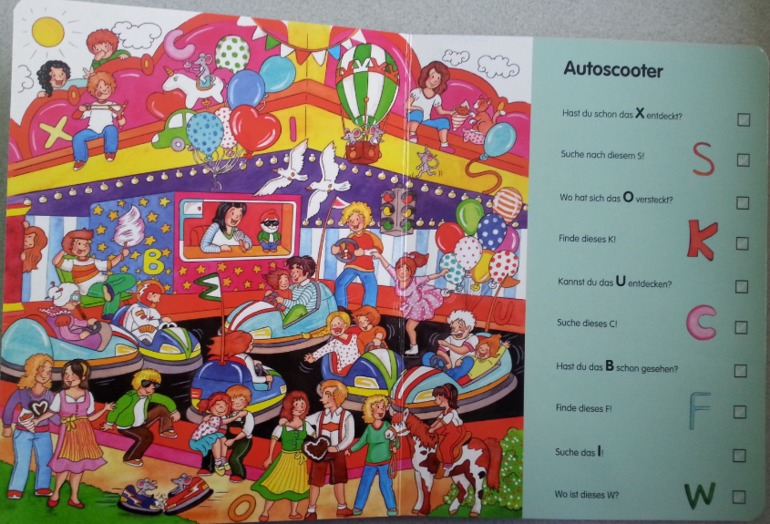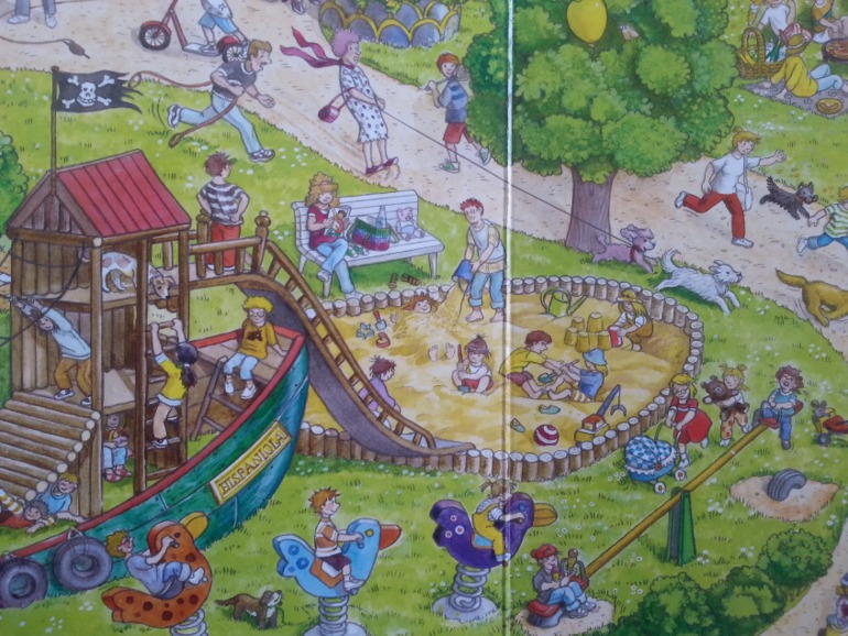 Размер 330*260. Плотный картон, 7 разворотов. Очень хороший вариант для изучения иностранного языка, да и просто поразглядывать интересно, ведь все происходит в парке развлечений, а это для каждого ребенка самое желанное место. Иллюстрации очень крупные и на мой взгляд, слишком яркие.