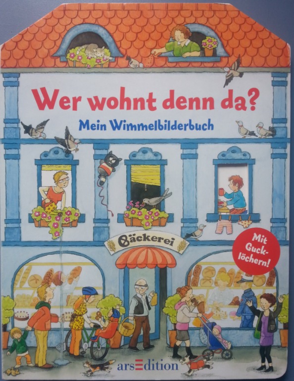 Размер книги 330*260. Плотный картон, 5 разворотов. Присутствует элемент игры- прорезные окошечки. Очень интересно, когда один и тот же предмет может оказаться в самых неожиданных местах в разных квартирах.