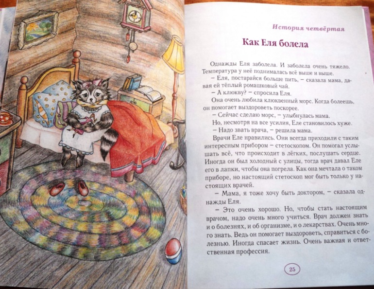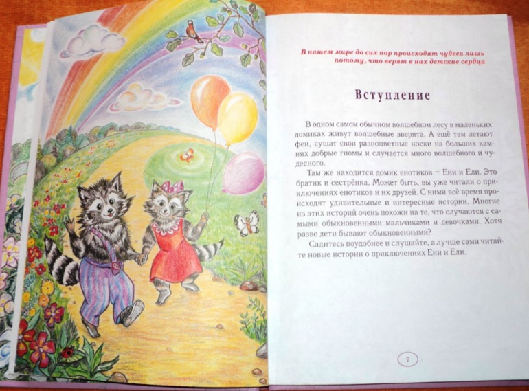 Книга с поучительными историями из жизни енотиков Ени и Ели, очень напоминающих котят из Sylvanian Families, в которые дочка так любит играть. Вот другие книги с продолжением этих историй абсолютно другие и енотики уже совсем не такие. Поэтому даже не знаю, стоит ли их брать. На эту книгу наткнулась случайно в Лабиринте и не могла не взять. Ну и несколько разворотов :
