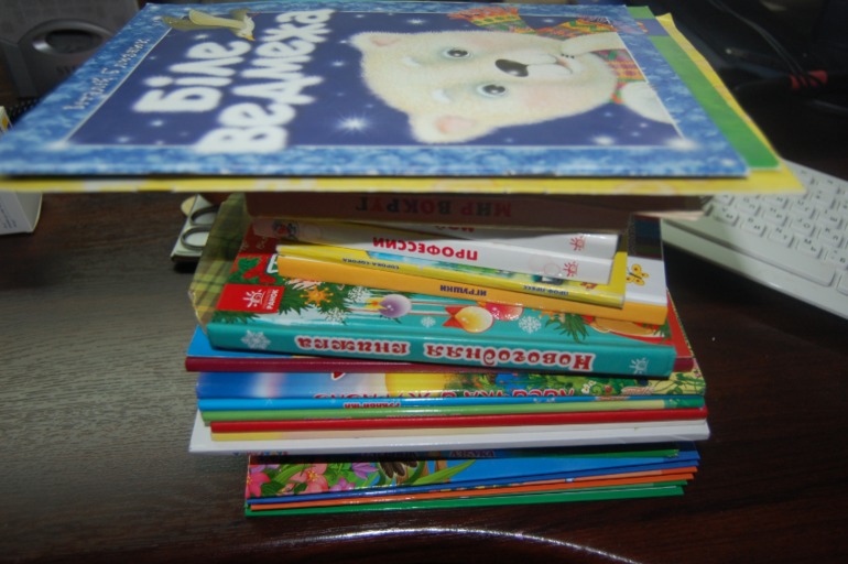 Есть еще кучка мелких книжек: Айболит, Телефон, Рукавичка, Колобок и т.д., несколько тонюсеньких с рассказами и стишками на украинском, а так же книжки для совсем малышни, там одни картинки - фрукты, сравнения, цвета и т.д. Не хочу фоткать их все уже. Они по-моему не стоят такого тщательного внимания )
