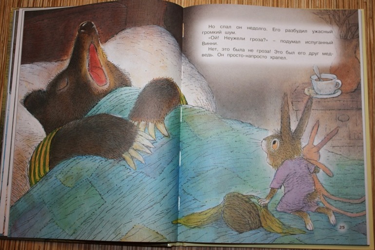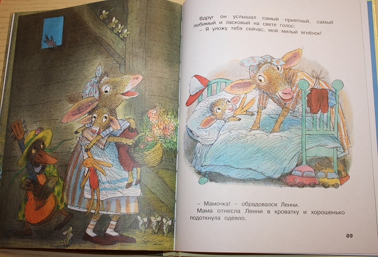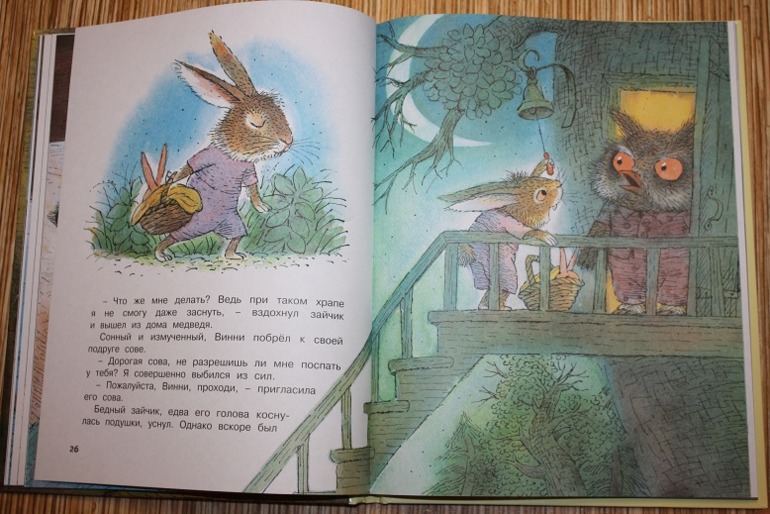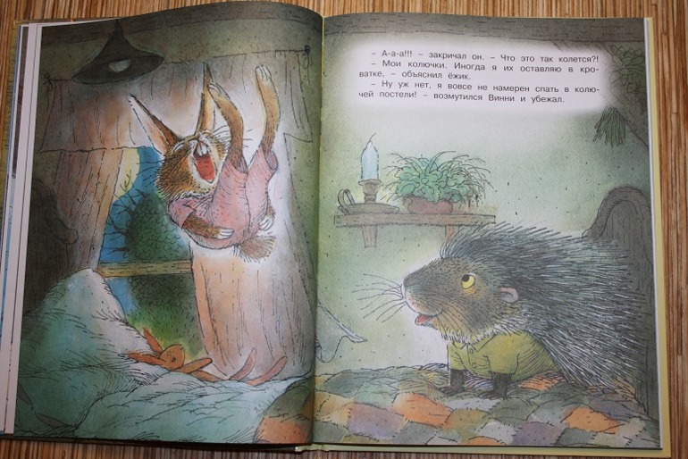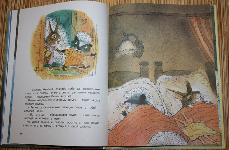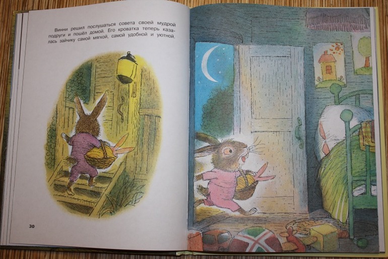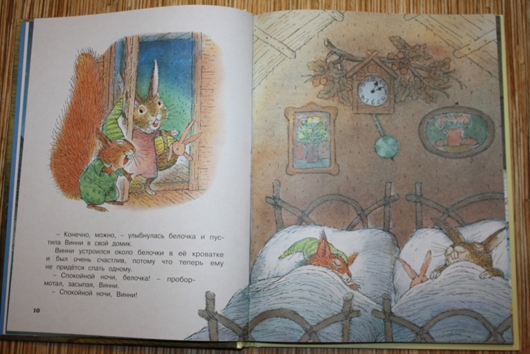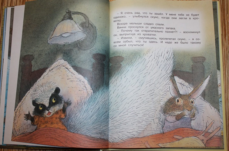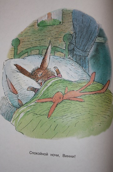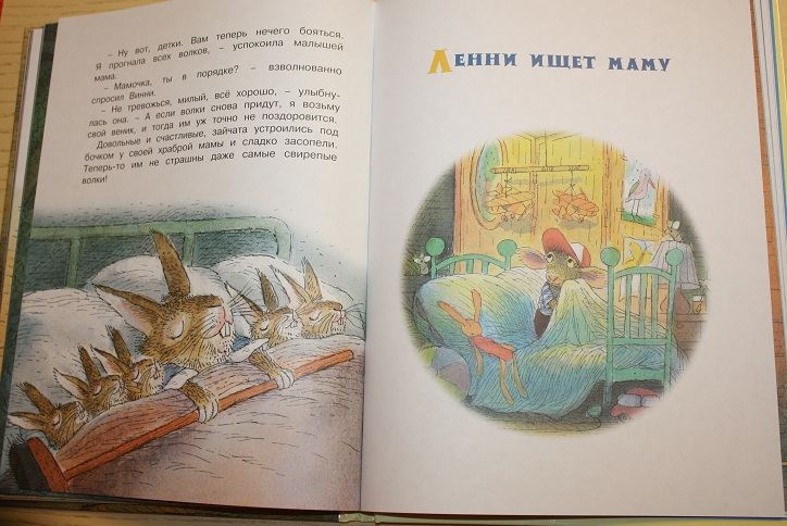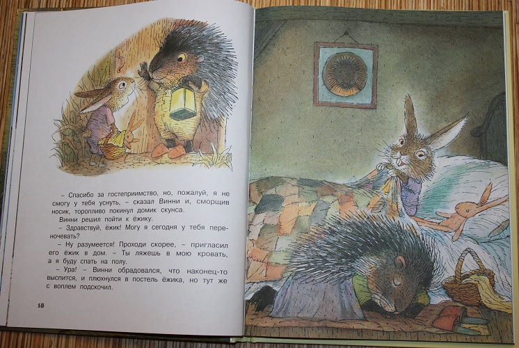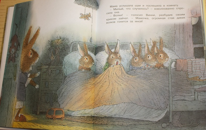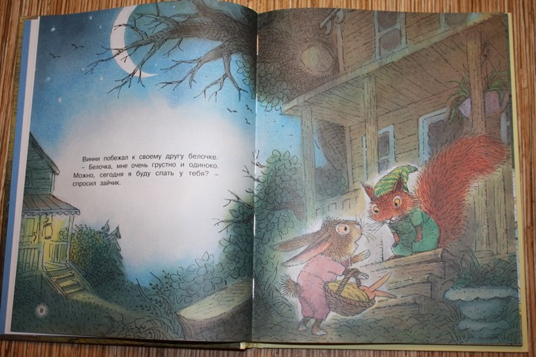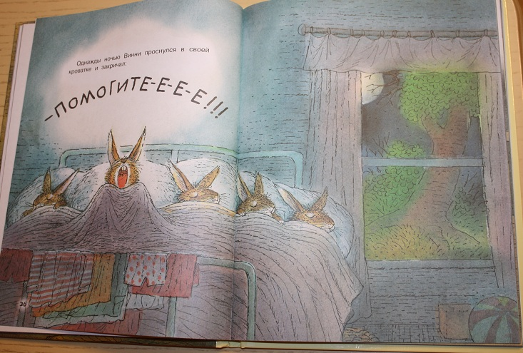 В книге 3 простых спокойных сказок, подходящих для чтения деткам перед сном в возрасте 2-3 лет. Мне больше всего нравится первая, про зайчика Винни, которому было очень одиноко засыпать дома и он решил пойти сначала к одному другу, потом к другому и т.д., пока не понял, что дома лучше всего и не вернулся домой в самую мягкую и уютную кроватку на свете :))