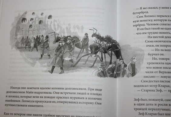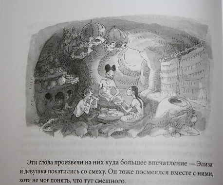 Еще немного иллюстраций, в книге их много, но все они черно-белые. Когда начинала читать, то шрифт показался мелковат для детской книги, а потом я увлеклась чтением и уже не думала об этом ))