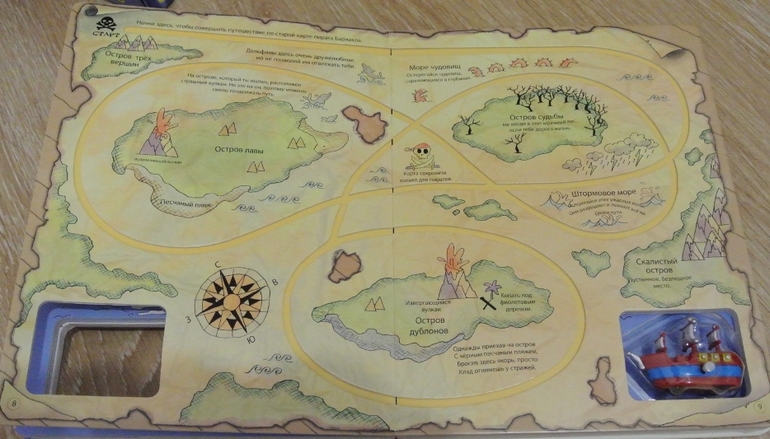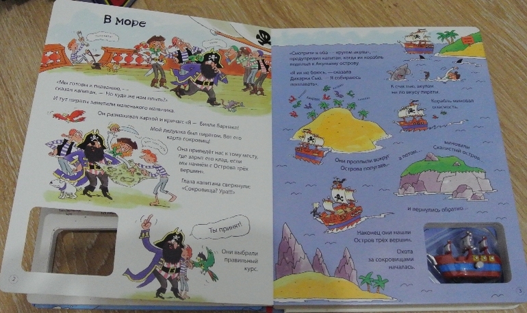 Пиратский корабль. Книжка-игрушка - любит корабль погонять, поиграть и изредка читает. Там тоже читать не особо много:)