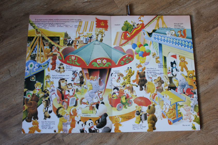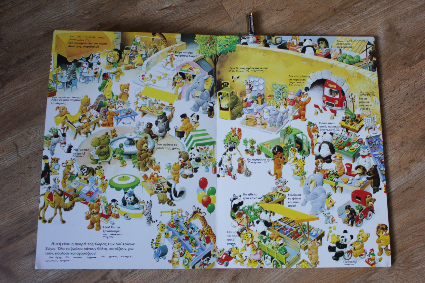 на ББ развороты не нашла, но она мне показалась при выборе смутно знакомой.может уже где и выкладывались страницы.книга просто замечательная. 7 разворотов, но и обложку тоже можно посчитать))) помимо обычного виммельбуха, в книге есть маленькие задания: из мною пока замеченных-найти красную коробку-подарок, а также с каждой страницы на следующую "перекачёвывают" несколько предметов или героев!смотрите: