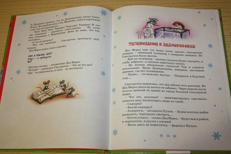 Зимние и новогодние книгиПризнаюсь сразу, первые две книги про Дедморозовку и её жителей я не читала, зато эту книгу "проглотила" всего лишь за полчаса. Не то, чтобы я так быстро читаю, просто страниц в книге не очень много (всего 80), шрифт крупный и много-много иллюстраций.