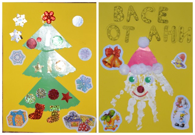 Это две стороны открыточки, сделанной ей собственоручно. По-моему, растет новый дизайнер мировой величины!