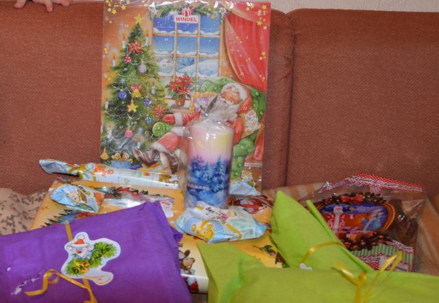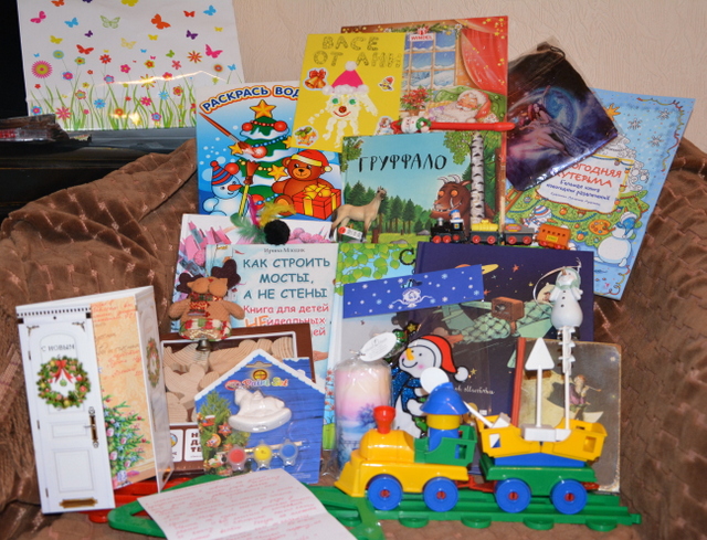 обмен подаркамиДада, к нам заглянул посыльный нашей феи. И привез не один подарок, а целый товарный состав! Все подарки были красиво упакованы и аккуратно подписаны