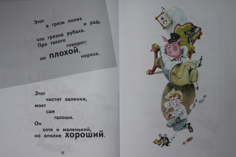 А все началось с того, что очень захотелось стихотворение "Что такое хорошо и что такое плохо". И иллюстрации были не столь значимы... Ну так мне казалось, когда только начинала выбирать. Пытаясь найти в глубине памяти изображение мальчика, у которого "грязь лежит на рожице", вспоминался только замечательный Мойдодыр из советского мультфильма...