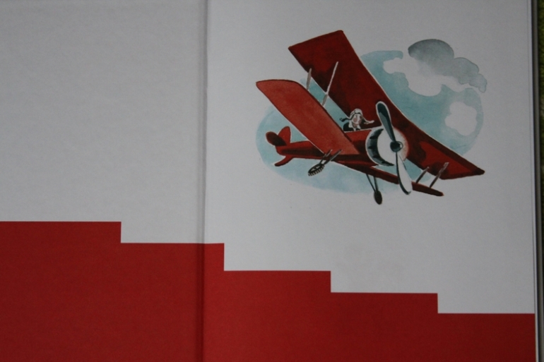 Формат книги чуть меньше А4 (20х26см), бумага офсет - плотная, но все же местами иллюстрацию чуть просвечиваются. Всего 80 страниц, очень крупный шрифт. Можно было бы сказать, что эта книга подойдет для первого самостоятельного чтения, но от расположения частей стихотворений под разным углом даже у меня глаза устали немного.