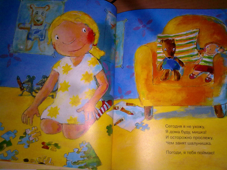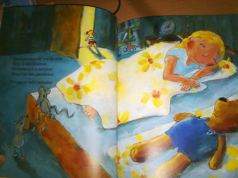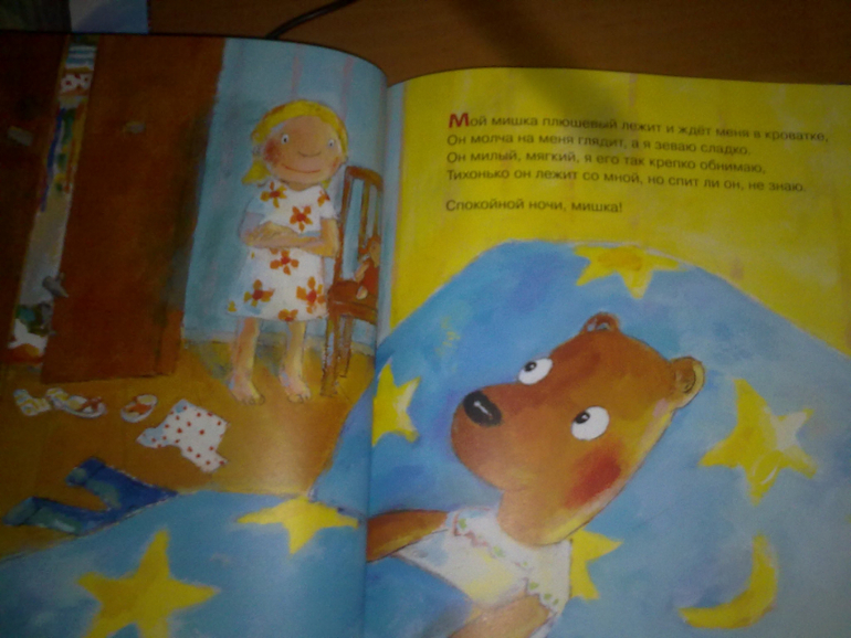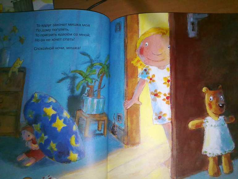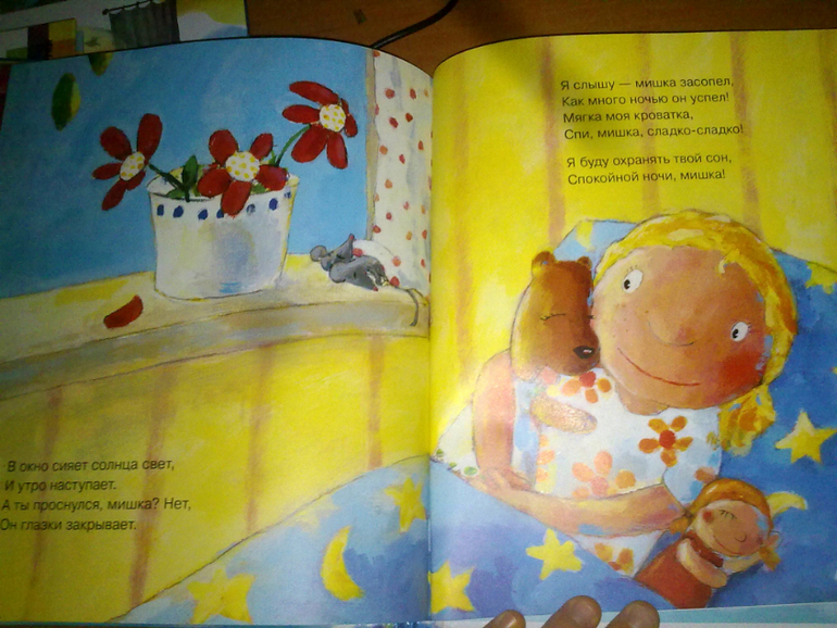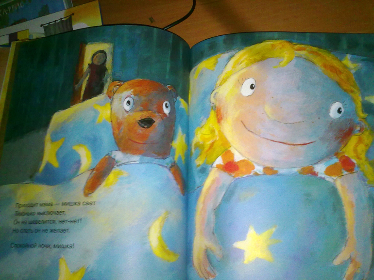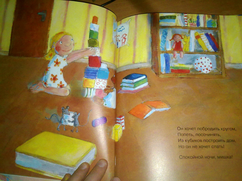 Про мишку. Истории в стихах для малышат от года. Книги очень красочная, рисунки замечательные. Несмотря на всю девчачность, сыну нравятся. Именно благодаря рисункам. Это настоящая детская жизнь - вихревая, размыто-яркая. игрушки, горшок/унитаз, ванная, зашкафные тени - все тут есть. Это привлекает, завораживает и влюбляет в книгу. Ничего сверхособенного, такие книги могут быть в детской библиотеке, а могут и не быть. Но они действительно очень милые. И действительно "насонгрядущные".