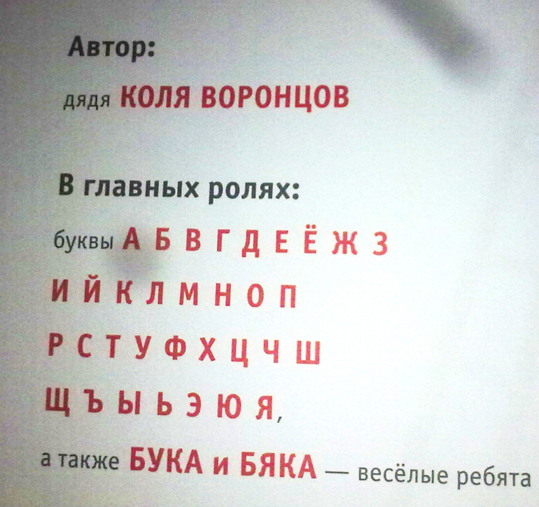Иллюстрирование в настоящем детском духе. Где мир выдуманный смешан с миром реальным, где фотографии и смешные рисунки дополняют друг друга. 96 страниц доброго юмора и веселых заданий к каждой букве от дяди Коли Воронцова. Николай Воронцов удивляет меня пониманием детей и умением быть с ними на уровне.