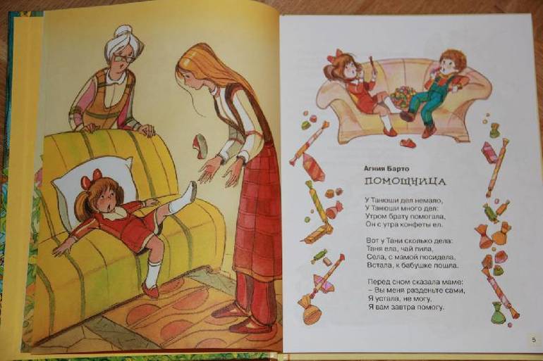 Сначала выбрала Барто иллюстрации Чижикова. Читаю раз стихотворение "Помощница" - режет слух, два - как-то коротко.Через неделю, правда, до меня дошло что именно "не то".