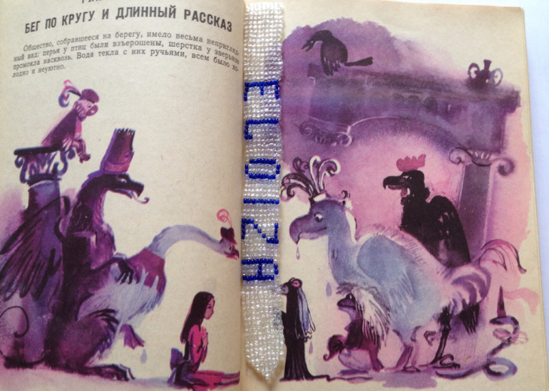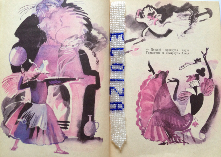 Здесь иллюстрации слегка перегружены малиново-лиловым цветом, и персонажи выглядят более свирепо, чем хотелось бы. Но это не значит, что книга мне не нравится, наоборот, она предполагает иной взгляд на Страну чудес - возможно, иногда там бывало жутковато...