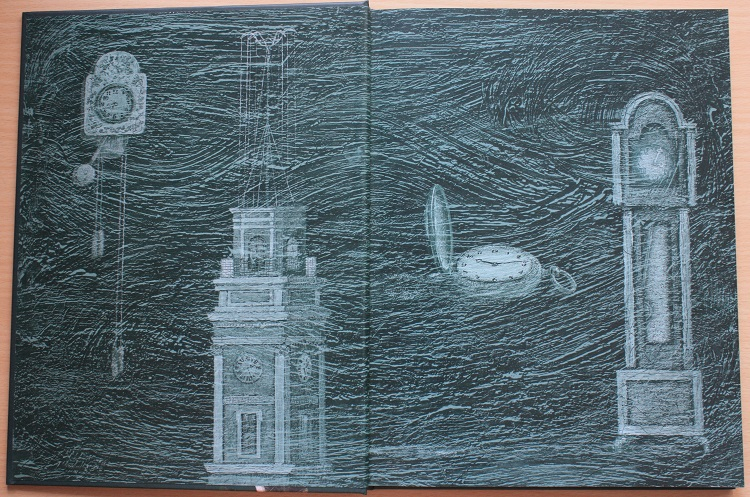 Это не книга, это альбом с шикарными (в основном, полностраничными) гениальными иллюстрациями, в которые хочется всматриваться и всматриваться. Любую из них можно встраивать в рамочку и любоваться. На одних только форзацах можно основательно "подзадержаться", задумываясь о течении времени и калейдоскопе жизненных мгновений, сменяющих друг друга...