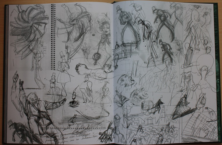 - и эскизы иллюстраций. Наброски очень интересно сравнивать с вошедшими в книгу иллюстрациями.