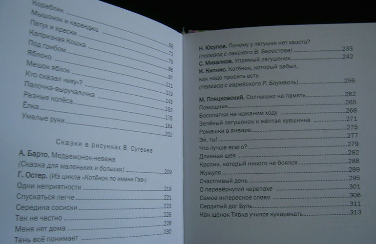 5. Еще один сборник с иллюстрациями В.Сутеева. "Лучшие сказки в картинках В.Сутеева". (My-shop, Read, Озон). Не могу себе отказать, видя его фамилию. Толстый сборник формата А5. В сборнике представлены рассказы и сказки самого художника и его коллег по цеху. Благодаря этому сборнику к списку любимых авторов прибавился - М.Пляцковский с его добрыми и поучительными рассказами.