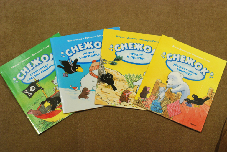 Серия "медвежонок Снежок". Небольшой простой текст, незамысловатые картинки.