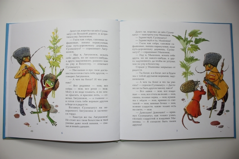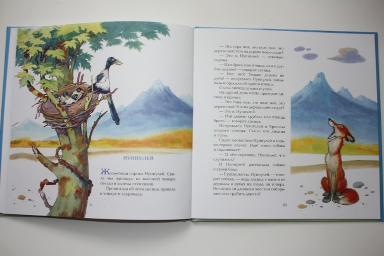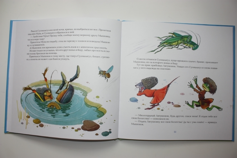 Сыну очень понравились и сказки, и иллюстрации. Хотя жалко было и жука-Сулмалагуза, и двух птенциков сороки Нуннулей.