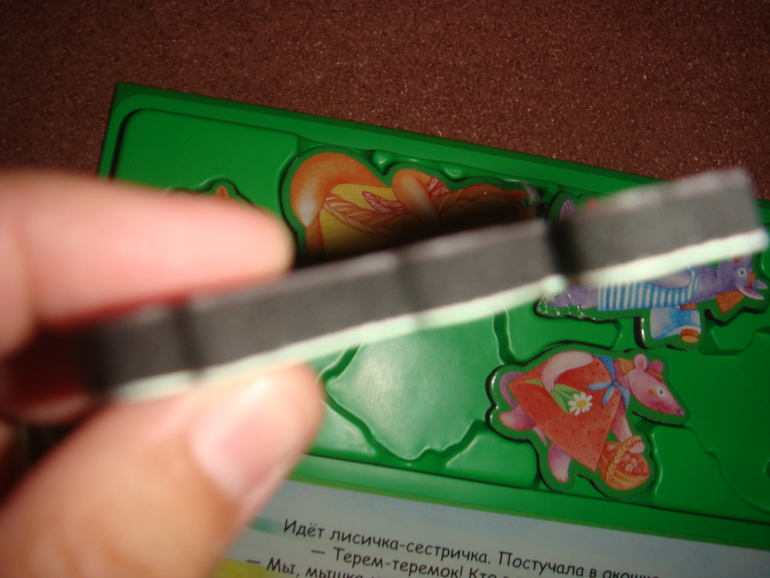 И книжки-театр. Иллюстрации здесь просто фоновые, дорожка, лес, теремок. НО магниты толстенькие и достаточно большие (примерно по 6 см.). Мы с этими магнитами разыгрываем сказку на магнитном мольберте.