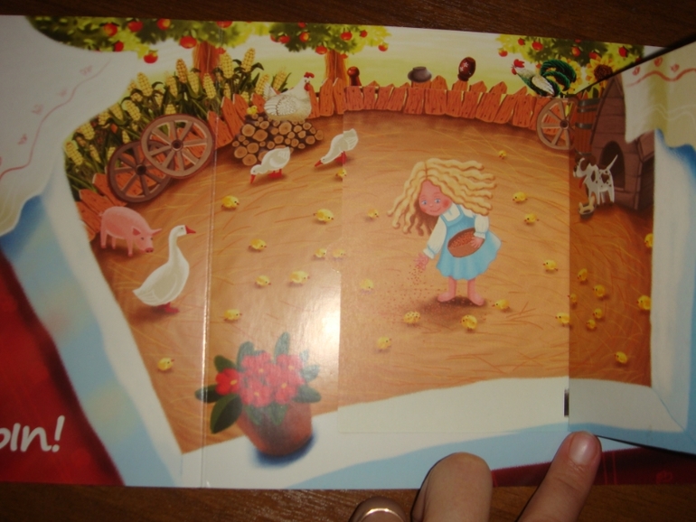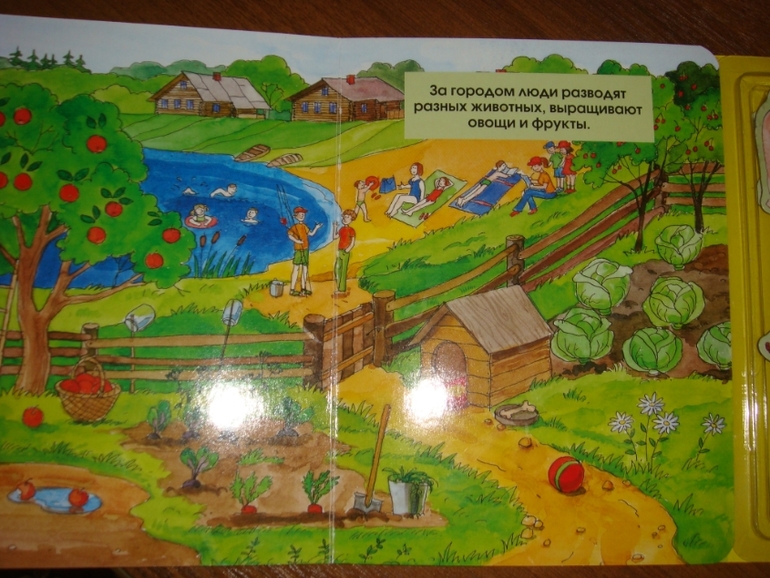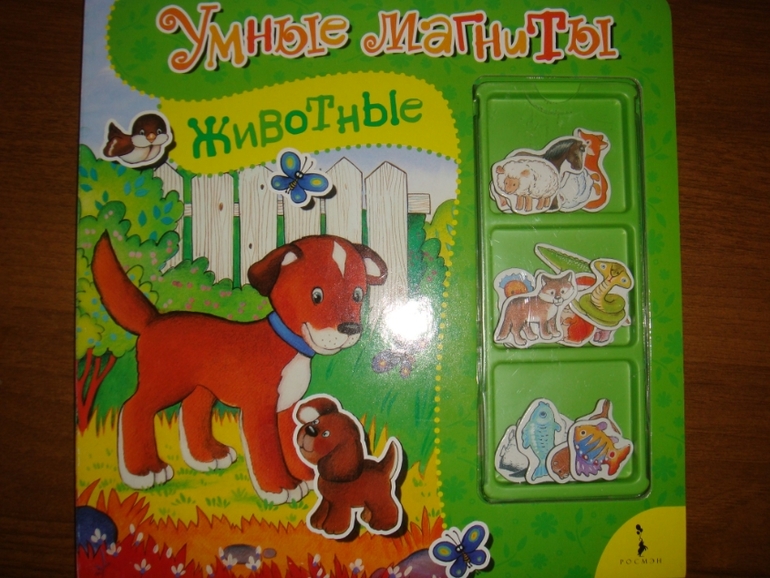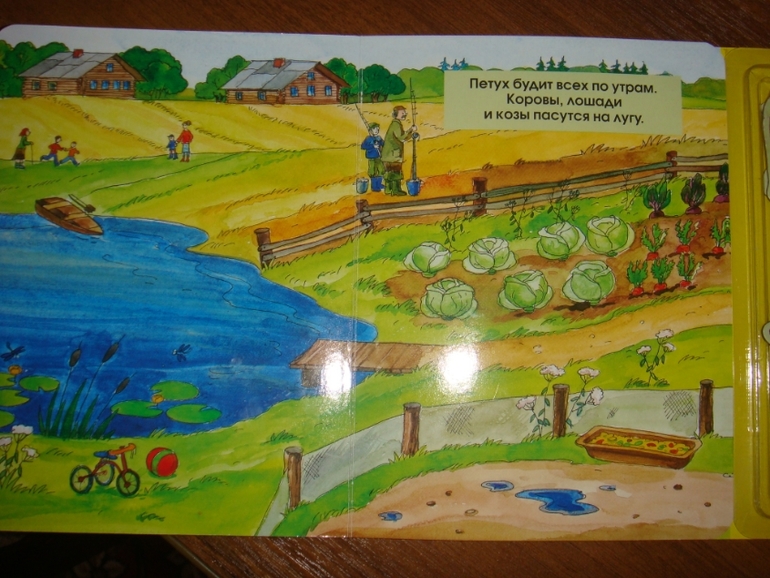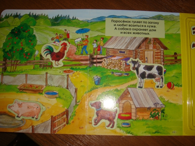 Есть книга только про деревенских животных. На ферме.. Здесь также красочные, реалистичные иллюстрации, передающие колорит деревни. Магниты здесь покрупнее и также лепятся в любом месте.