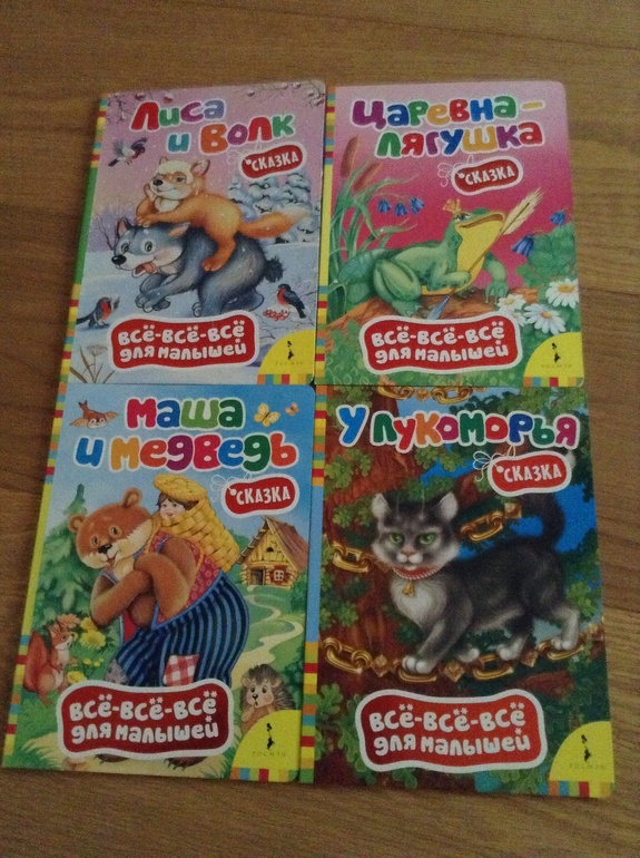 для самых маленькихЭто наши самые первые книжки,так сказать расходники.читать сыну я начала с месяца каждый день,но так как сын еще маленький и все тянет в рот нам были нужны книжки с не замысловатыми короткими историями,яркими картинками,плотной бумагой и желательно недорогие(что по-моему очень важно для деток до 10 мес-1 года).книжками я полностью довольна,считаю что они идеально подходят для поставленной мною задачи,сынок разглядывает картинки и слушает сказки,грызет уголки и мне ни капли не жалко,в общем все довольны.